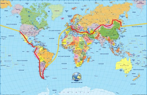 Trotz dieser klaren Ansage wollen wir uns von der Reise treiben lassen, nicht umgekehrt. Wir sind auch jetzt noch nicht sicher, ob sich dieser Plan überhaupt realisieren lässt. Doch wir sind völlig frei in der Planung und durchaus anpassungsfähig. Sollte sich unser Vorhaben in den nächsten Wochen als zu kompliziert, zu gefährlich oder zu teuer herausstellen, werden wir unsere Pläne ändern, nur das eine oder nur das andere machen oder die drei Kontinente Europa, Asien und Amerika anders zusammen puzzeln.